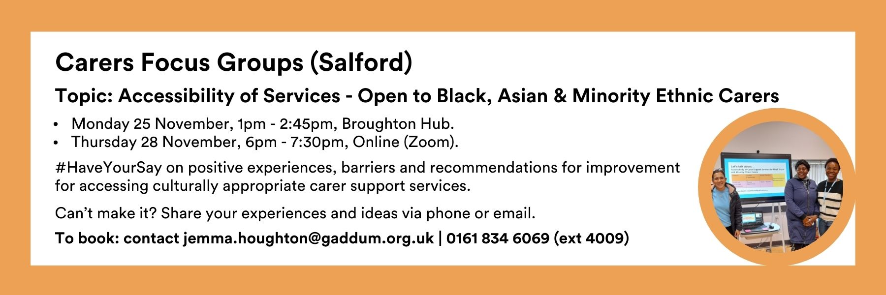 Are you a Black, Asian, or Minority Ethnic Unwaged Carer* living in Salford?